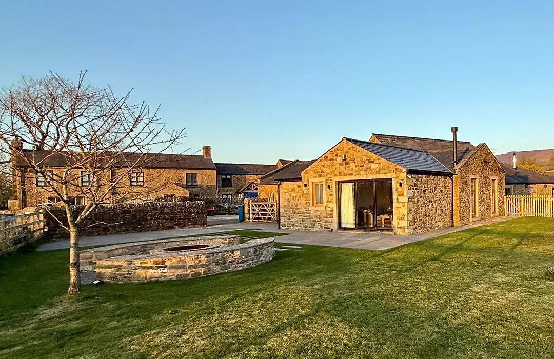 Ribble Valley Hideaways villa is equipped with a microwave oven, an electric kettle, and glassware for self-catering in an outdoor dining area.